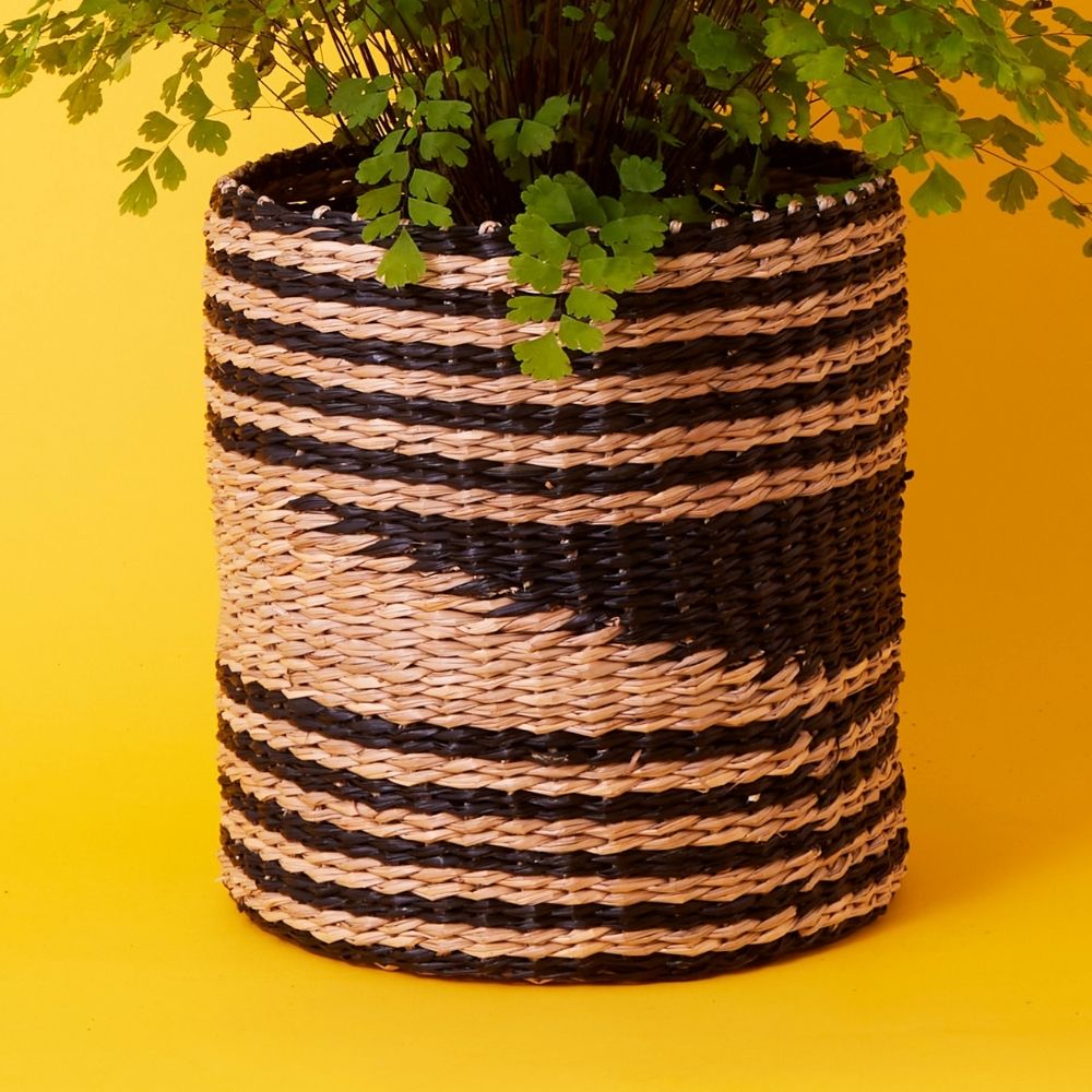 12" Small Stripes Seagrass Tumbler Planter Shelf Basket