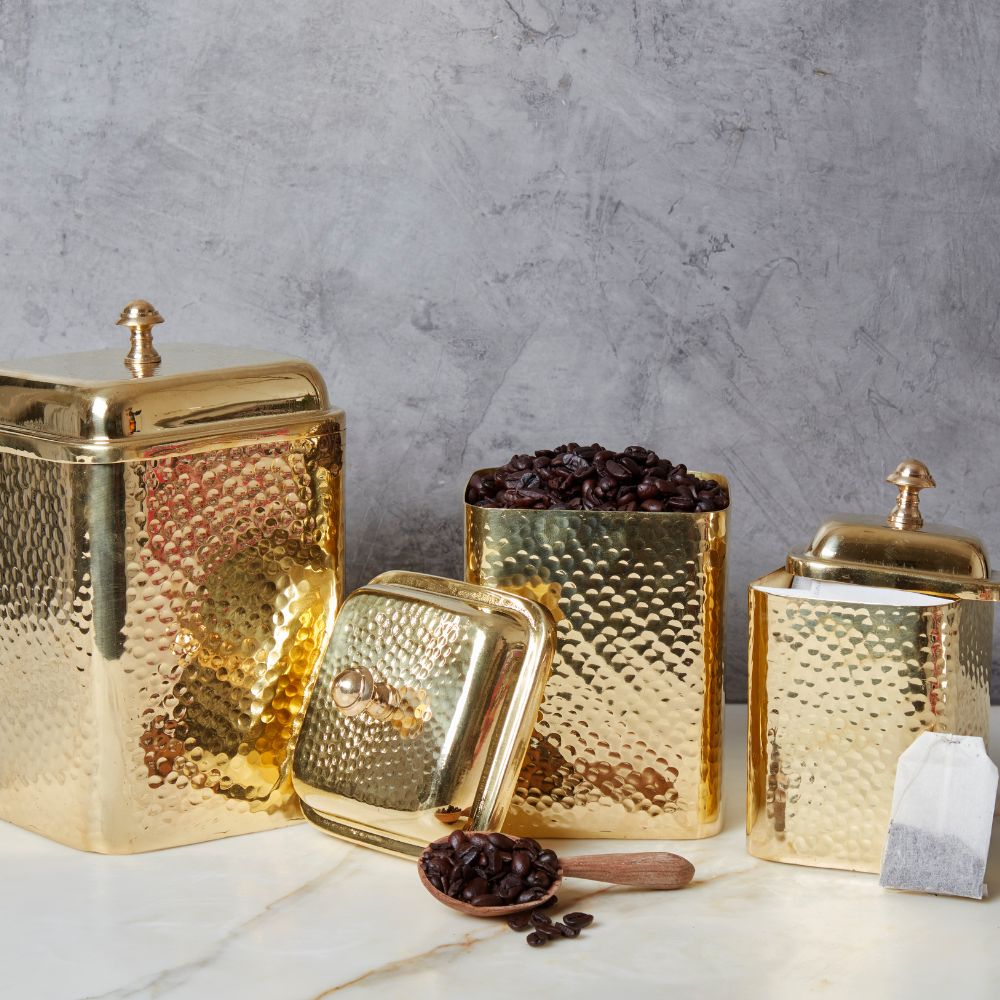 Pure Brass Hand Hammered Coffee Tea Square Canister Set of 3