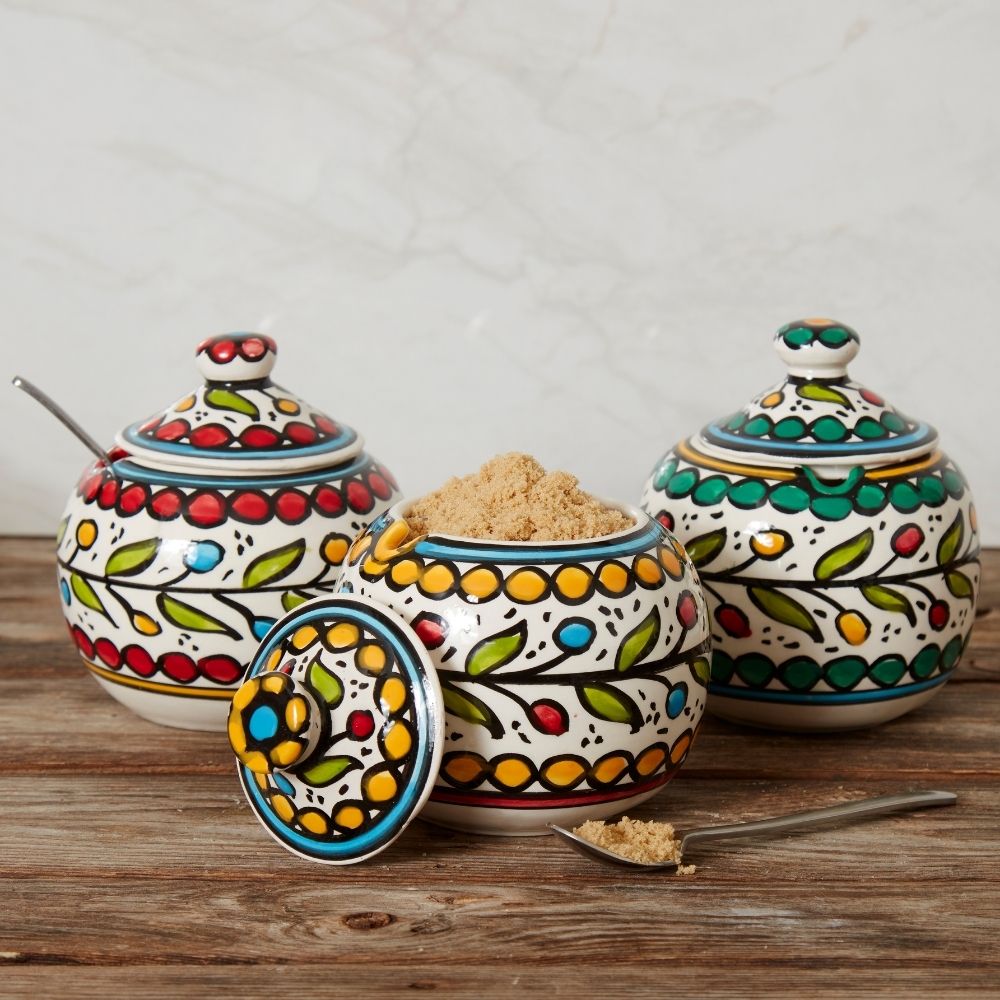 Ceramic Small Palestine Colorful Vine Canister Set