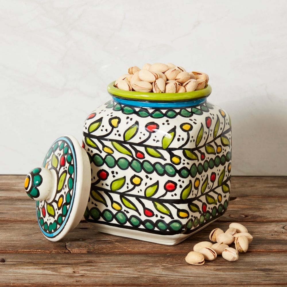 Ceramic Large Palestine Green Colorful Vine Canister