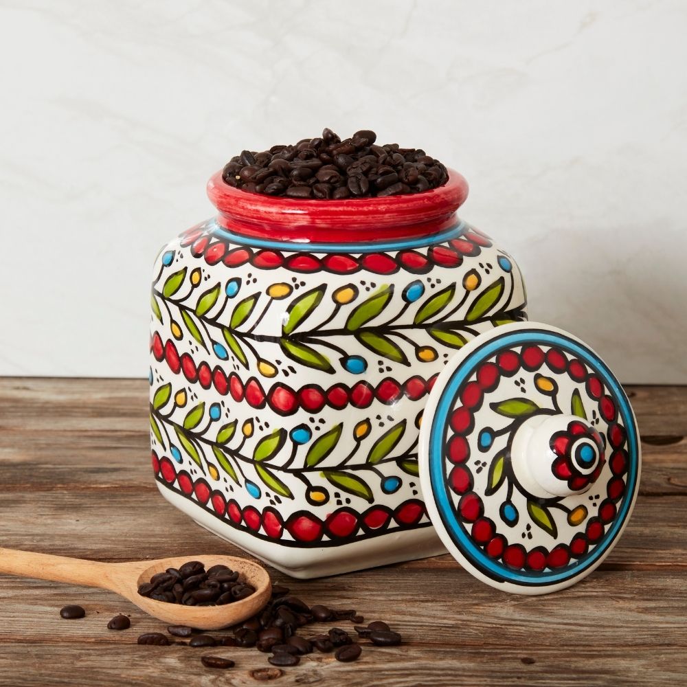 Ceramic Large Palestine Colorful Vine Canister Set