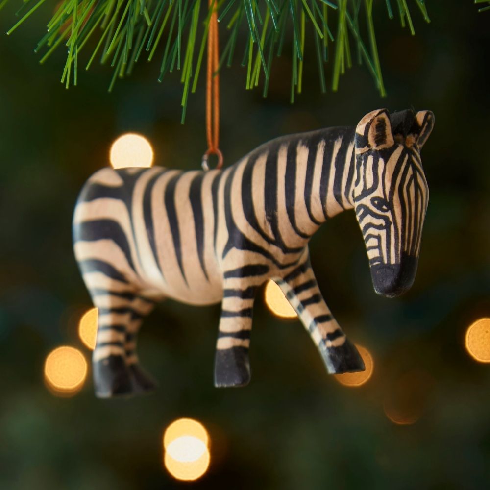 Painted Wood Zebra Christmas Ornament