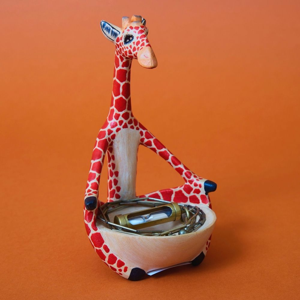 Painted Wood Giraffe Keys Paper Clips Ring Dish