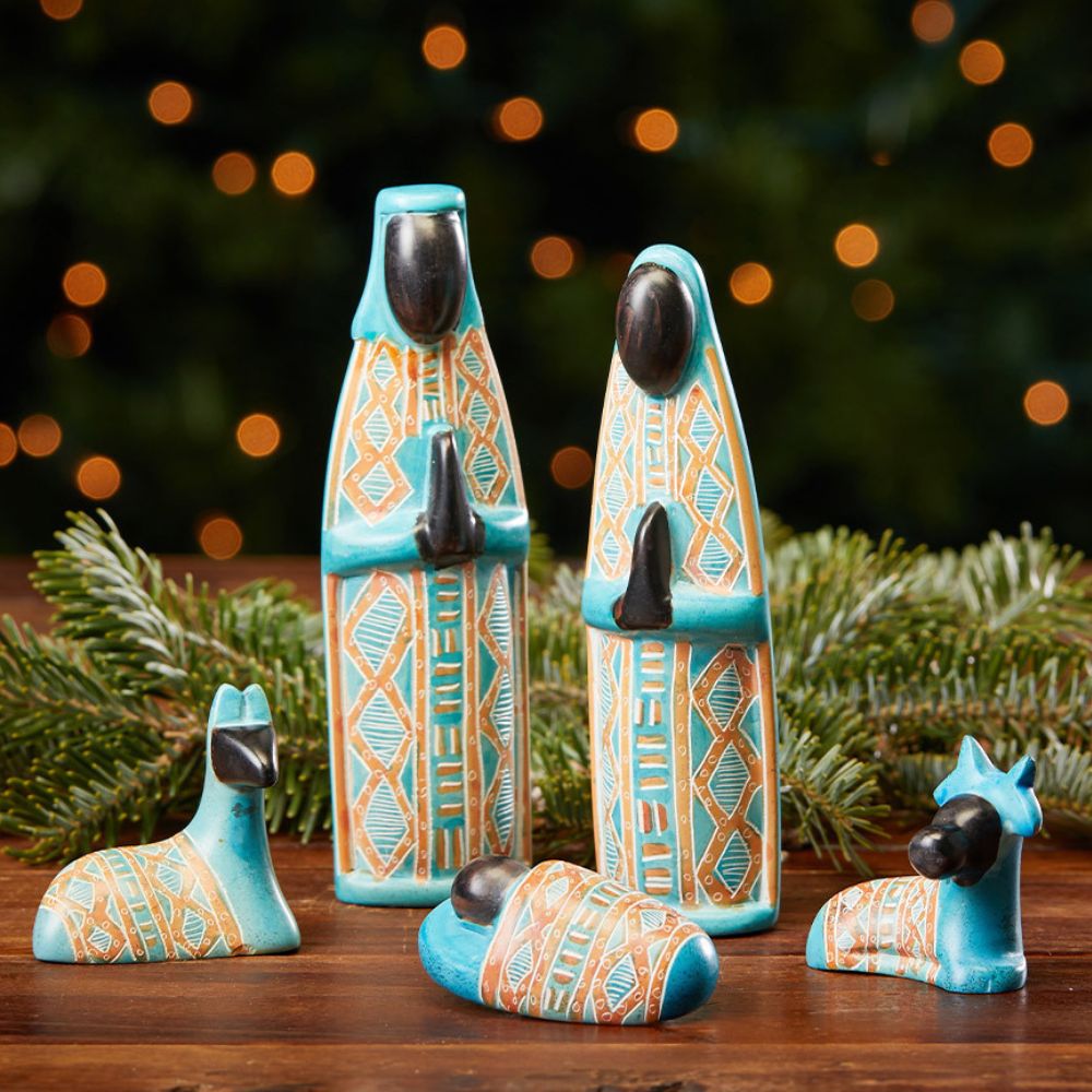Kisii Stone Colorful Pattern Nativity Manger Set Holiday Trees