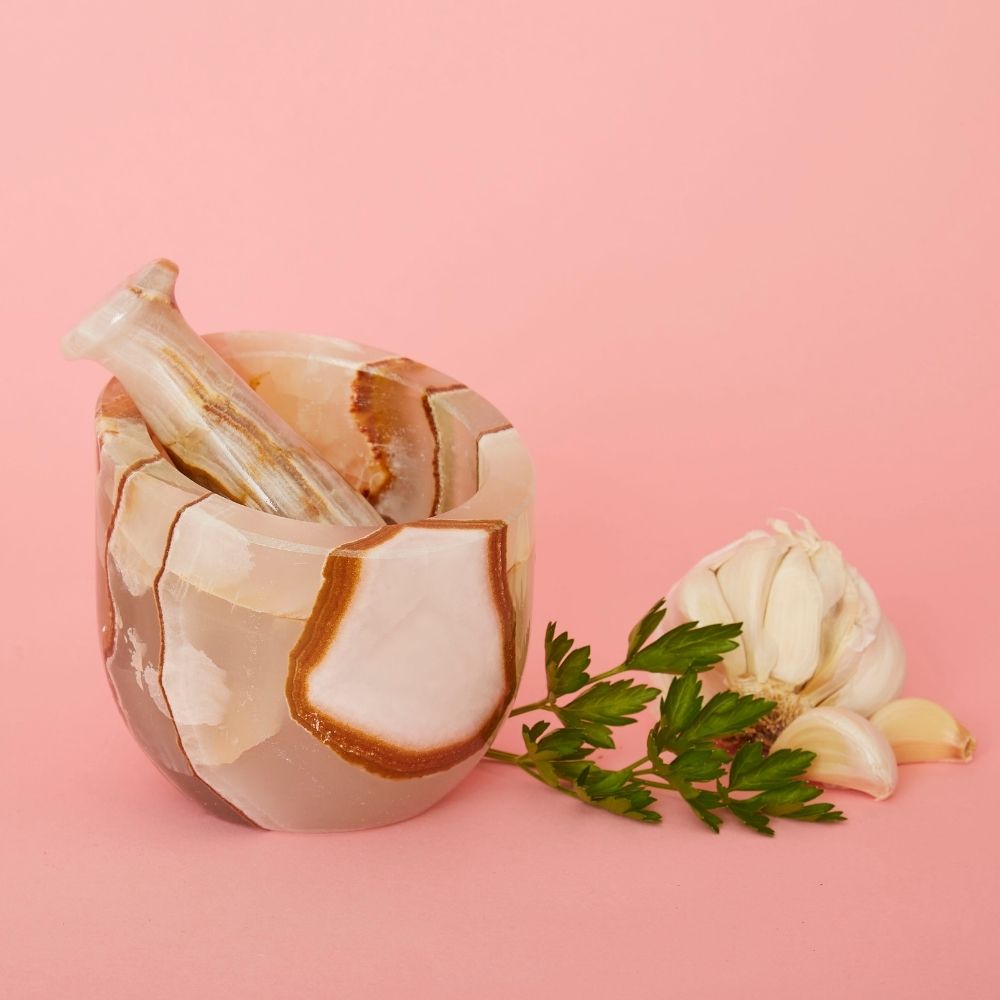 Small 10" Pink Green Marble Onyx Fruit Bowl