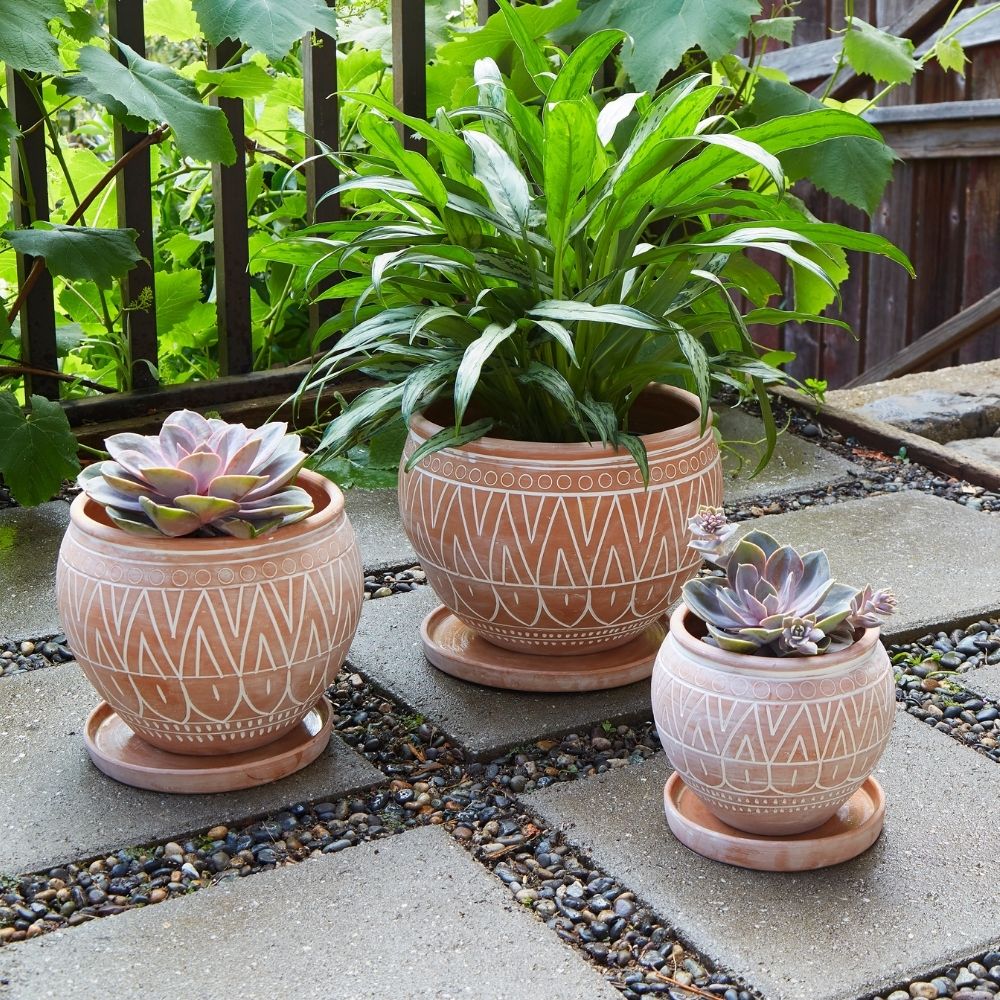 Small Floral Terracotta Owl Hedgehog Snail Pot Set