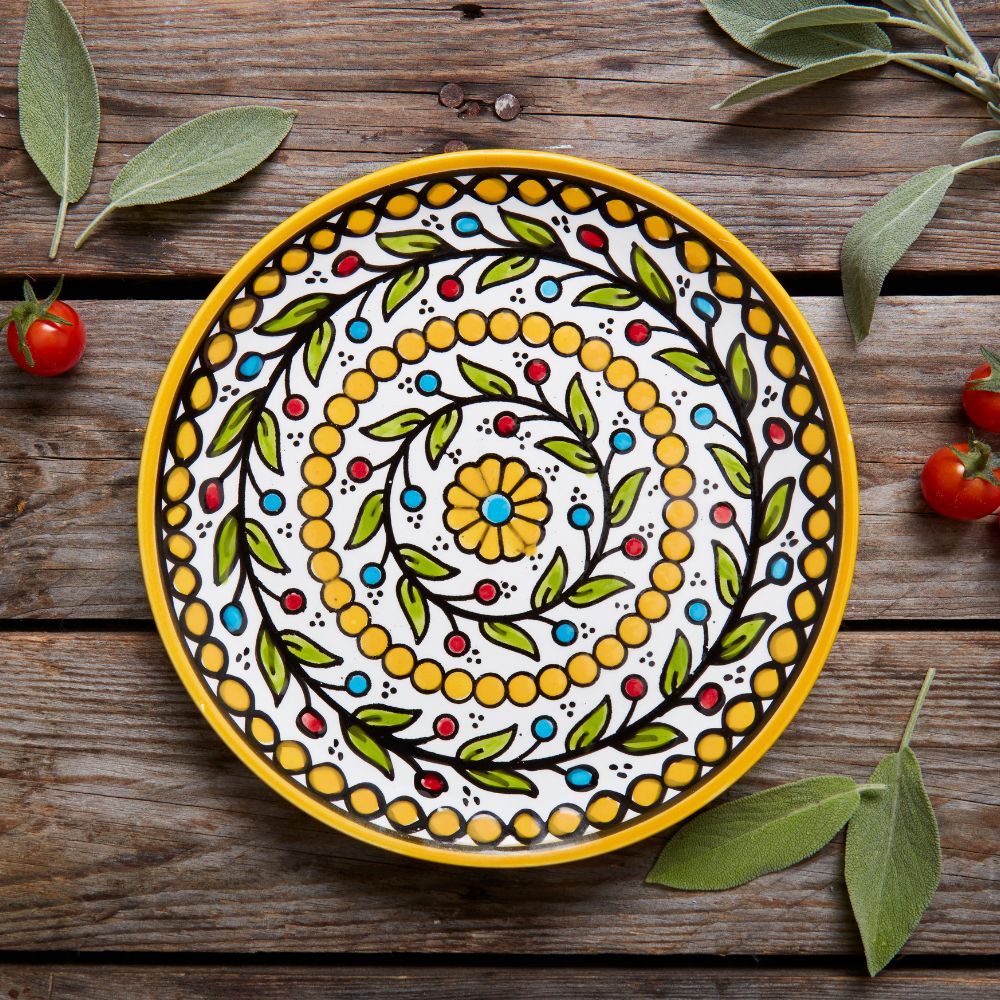 Ceramic Palestine Colorful Vine Yellow Salad Plate