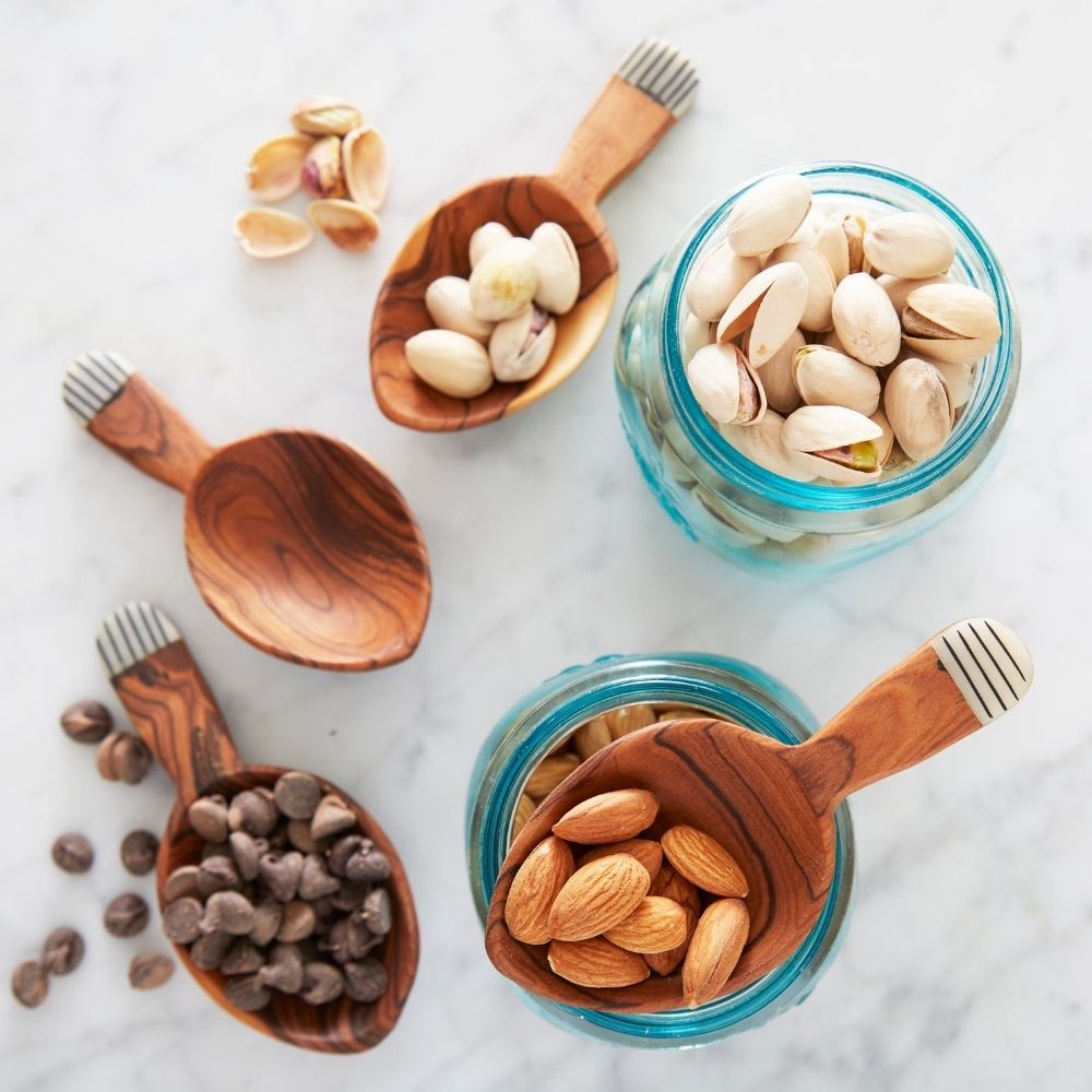 Olive Wood Bone Stripes Scoop Set