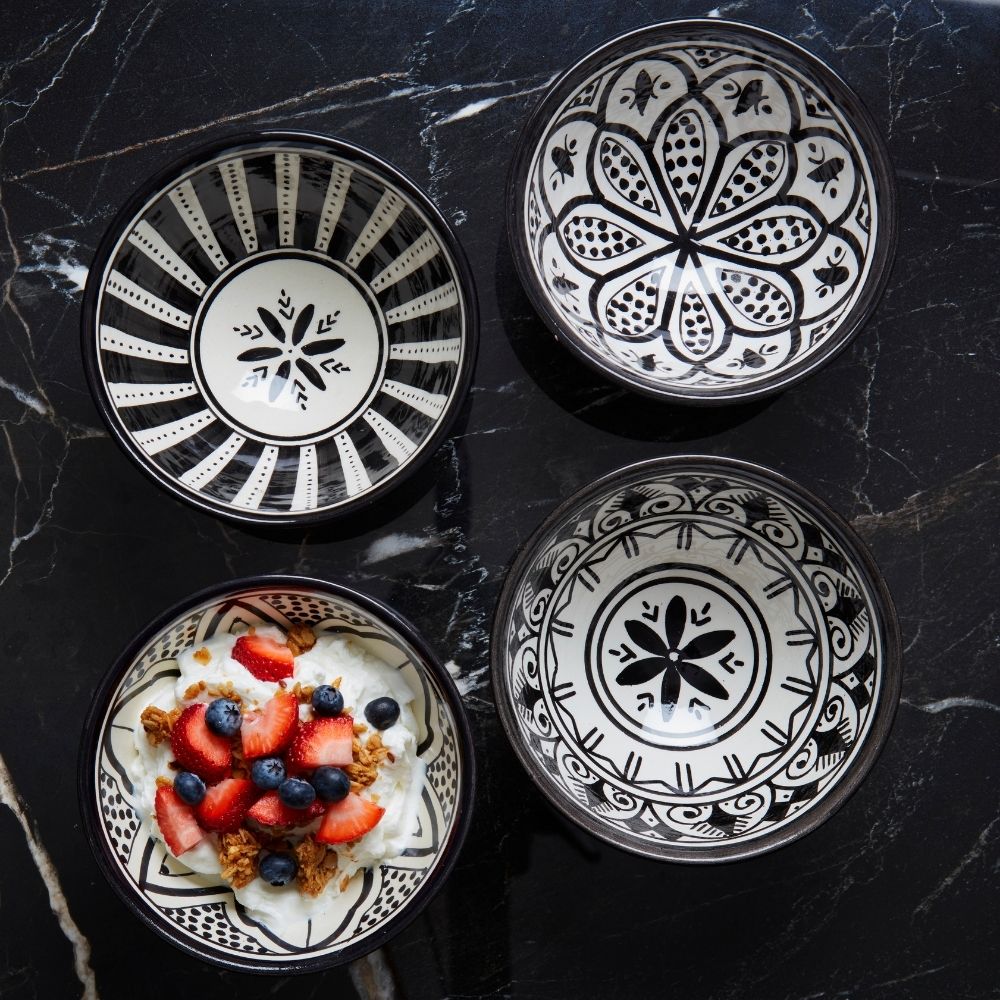 Black Arabesque Ceramic Snack Bowls
