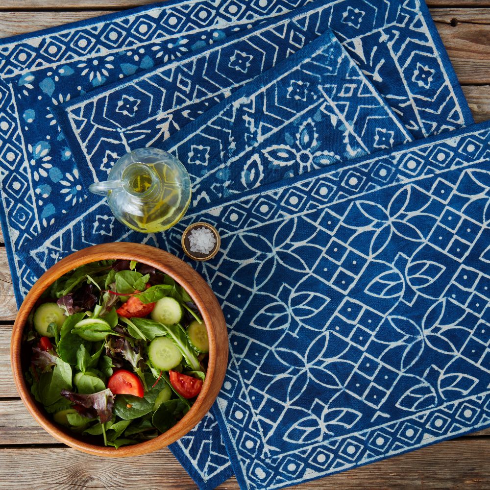 Indigo Paisley Vine Resist Block Print Napkin Set