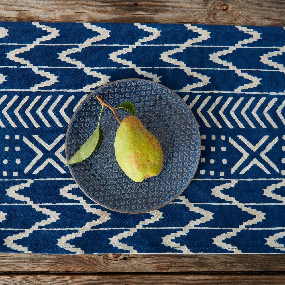 Cranberry Vine Block Print 72 x 14 Table Runner