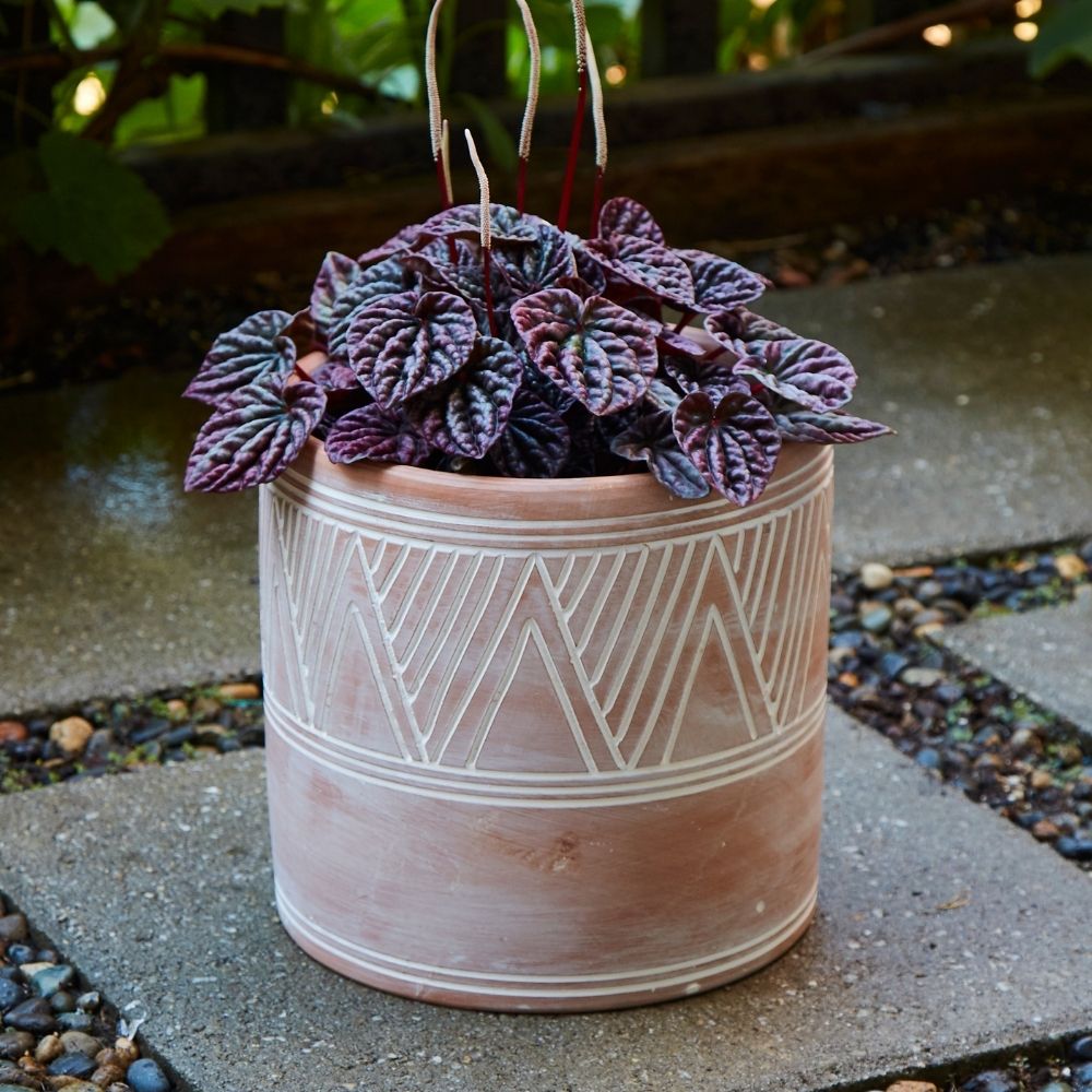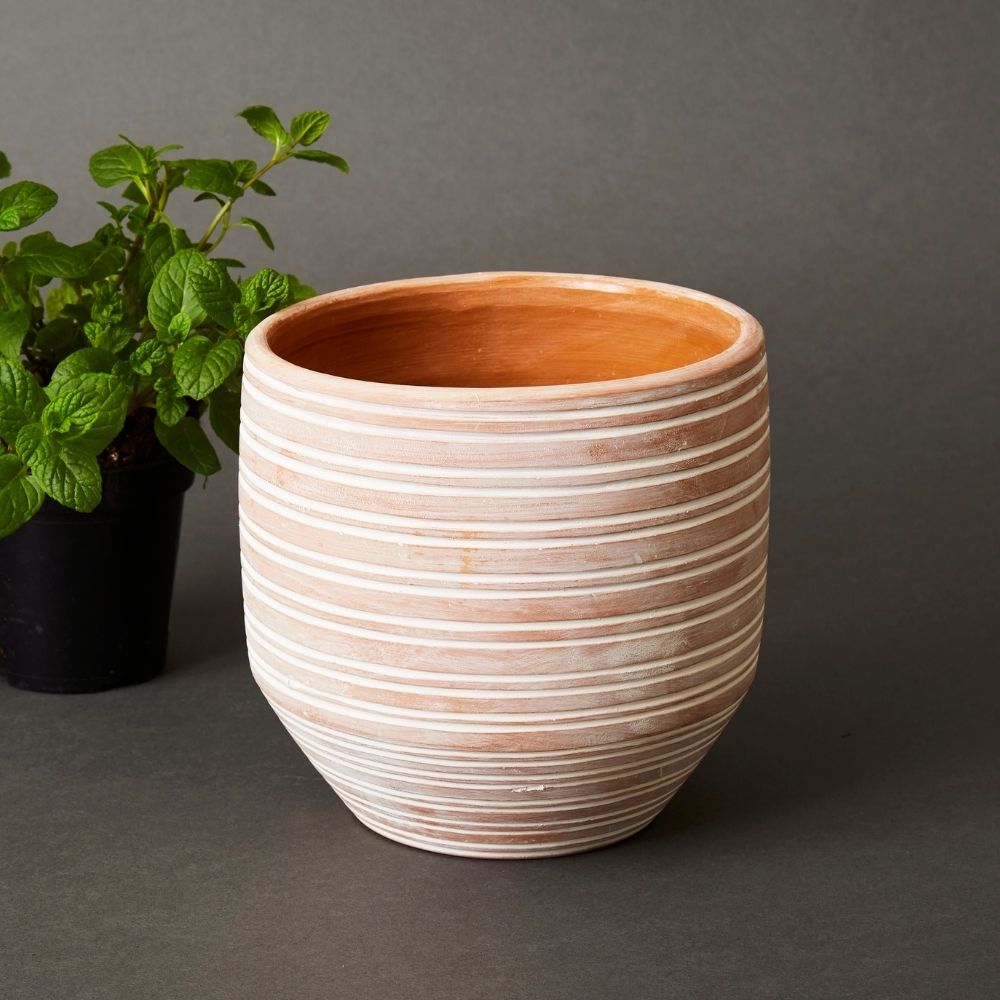 6.5" Small Striped Terracotta Pot