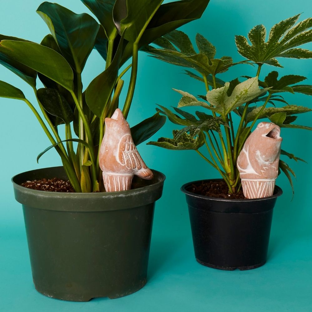 Bird Frog Terracotta Watering Stake Set